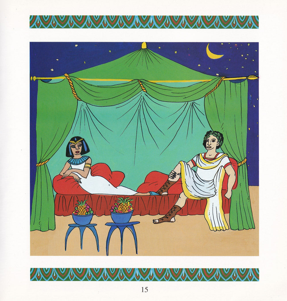 Cleopatra (70-30 B.C.) was Egypt's last and most famous queen. In an age of war and bloodshed, not only did she use her intelligence, her beauty and her charm to defend her beloved country, but also, the two most powerful men of the time fell in love with her. First as a young woman, she dazzled the great Caesar by rolling herself up in a carpet in order to meet him. Then sometime after Caesar's murder, Cleopatra enchanted the Great Mark Antony - so beginning one of the most famous love stories in history, and also one of its most tragic.